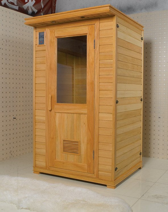 Ngoài bể sục thư giãn cơ thể, gia đình còn lắp đặt phòng xông hơi khô tiện lợi đảm bảo sức khỏe cả nhà. Được thiết kế nhỏ gọn phù hợp cho 1-2 người cùng sử dụng đồng thời mà vẫn thoải mái. Gỗ thông được sử dụng trong phòng xông có bề mặt nhẵn mịn, an toàn với sức khỏe con người, không những thế gỗ còn có mùi thơm tự nhiên, chịu được nhiệt độ và độ ẩm cao. Ưu điểm của mẫu phòng xông này là người xông có thể quan sát được bên ngoài khi đang xông, thiết kế phần kính sẽ đồng bộ với nội thất bằng kính trong gia đình.