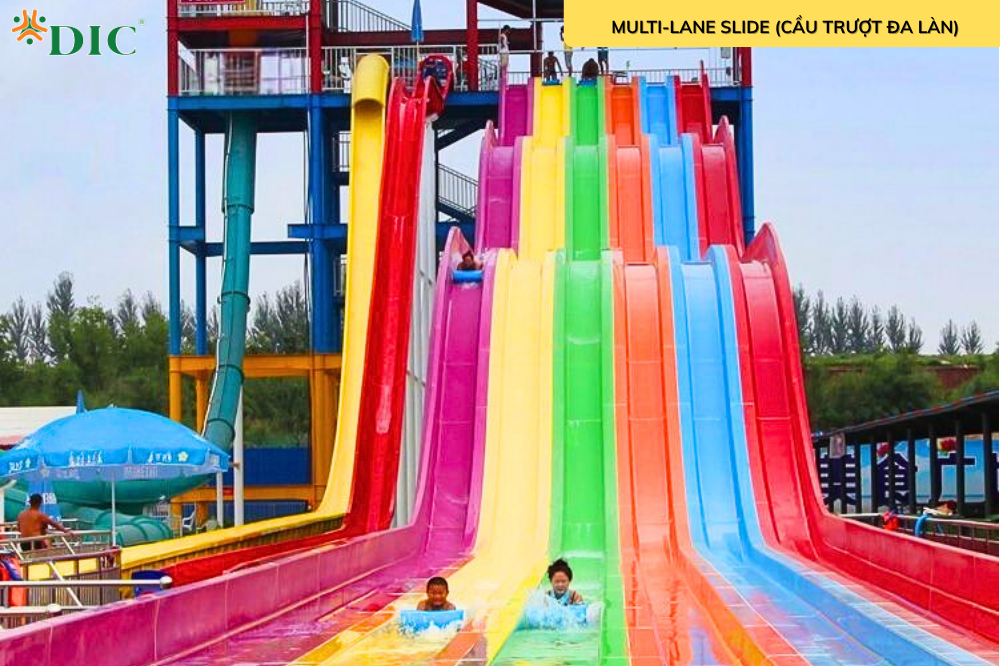 Cầu trượt đa làn (Multi-lane Slide) – còn gọi là cầu trượt cầu vồng: gồm nhiều làn song song, cho phép nhiều người chơi cùng lúc. Người chơi có thể trượt bằng thảm hoặc trực tiếp bằng body, tạo cảm giác thi đấu vui nhộn và tăng lượt khách mỗi giờ