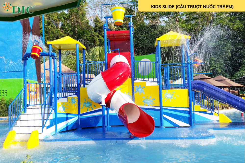 Cầu trượt nước trẻ em (Kids Slide): cầu trượt trẻ có kích thước nhỏ, dốc thấp, có họa tiết ngộ nghĩnh; đảm bảo an toàn tuyệt đối và chống trơn trượt dành riêng cho trẻ nhỏ.