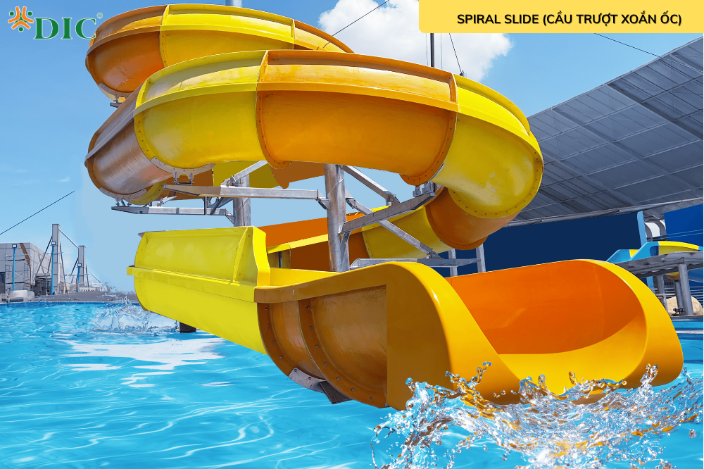 | Spiral Slide (Xoắn ốc) | Đường trượt dạng xoắn ốc xoay quanh trục, mềm mại, phù hợp mọi lứa tuổi. |