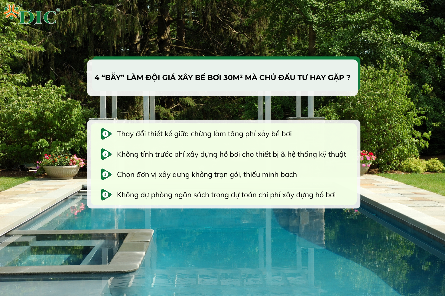 4 Lý do làm đội giá xây bể bơi 30m² mà chủ đầu tư hay gặp