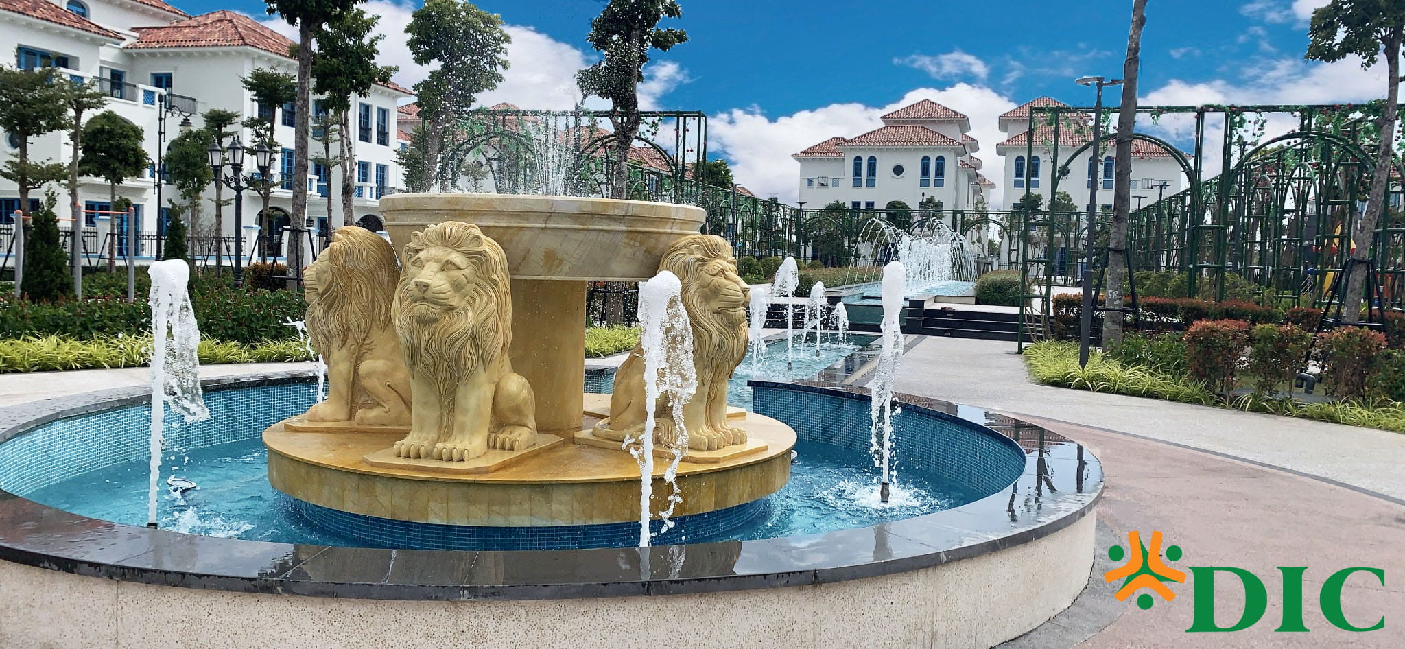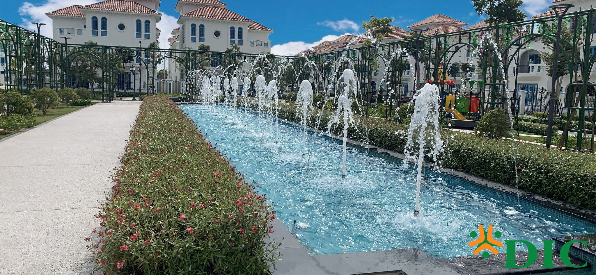 Để đáp ứng nhu cầu vui chơi vào dịp lễ, DIC tiếp tục hoàn thiện hệ thống đài phun Alcazar với hệ thống đèn đổi màu lung linh. Tại đây, dân cư và du khách vừa dạo bước ngắm nhìn những vòm hoa đầy màu sắc Địa Trung Hải với đài phun nước kéo dài thơ mộng.