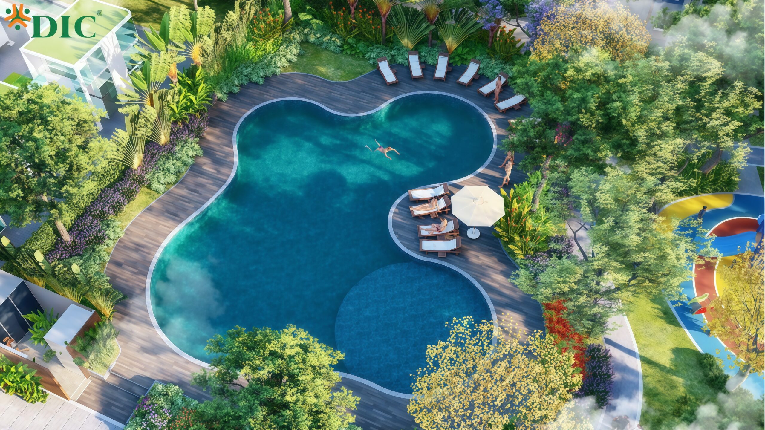Tại dự án, DICTECH sẽ triển khai thi công một hồ bơi ngoài trời có thiết kế uốn lượn độc đáo, tạo sự mềm mại và hài hòa với cảnh quan tổng thể. Đây là một trong những giải pháp thiết kế bể bơi hiện đại, hồ bơi được phân chia thành các khu vực theo độ sâu, đáp ứng đa dạng nhu cầu sử dụng: