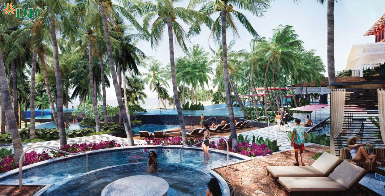 Ngoài hồ bơi Nam Phương, DICTECH còn được Chủ đầu tư tin tưởng giao việc thi công toàn bộ các hồ bơi khu Làng Tây tại Hòn Thơm như: