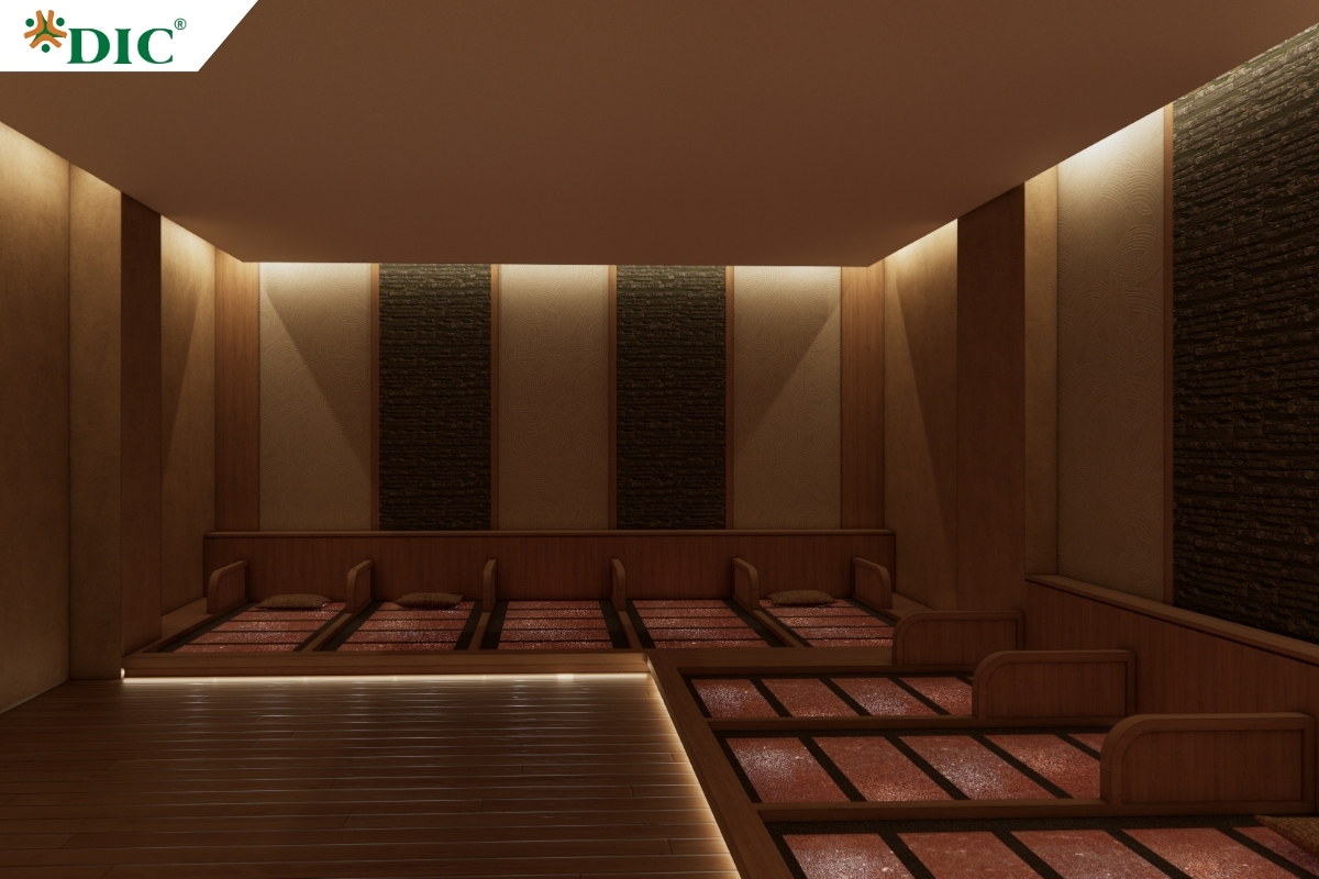 - Phòng đá khoáng Ganban (Ganbanyoku): Hệ thống gia nhiệt âm bên dưới các phiến đá khoáng tự nhiên giúp duy trì mức nhiệt ổn định, hỗ trợ cải thiện tuần hoàn máu, giảm đau mỏi cơ xương khớp và mang lại cảm giác thư giãn sâu.