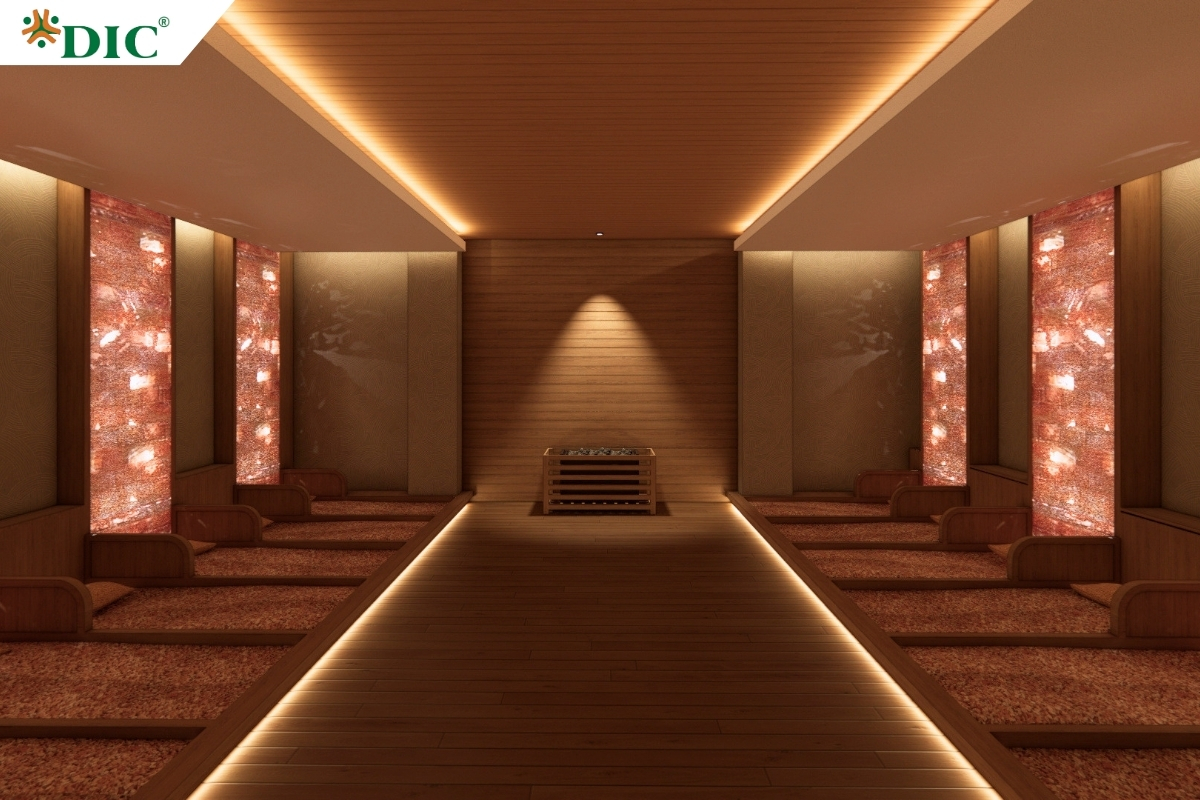 - Phòng đá muối Himalaya: Kết hợp nền đá muối tự nhiên với hệ thống gia nhiệt âm sàn, tạo ra môi trường nhiệt nhẹ ổn định, giúp cân bằng cơ thể và hỗ trợ thư giãn sâu.