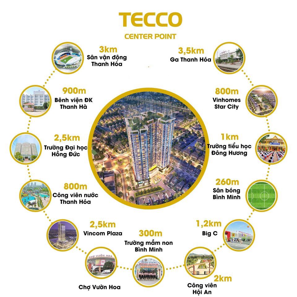 Tecco Center Point Thanh Hóa nằm tại khu đô thị mới, bắc đại lộ Lê Lợi, Tp. Thanh Hóa, giữa 2 mặt tiền đường Lý Nam Đế và Hoàng Hoa Thám được đánh giá là tâm điểm phồn thịnh bậc nhất thành phố. Vị trí dự án còn là cửa ngõ thành phố, kết nối thành phố Thanh Hóa tới Hà Nội và các tỉnh phía Bắc dễ dàng thông qua Quốc lộ 1A hay đại lộ Lê Lợi.