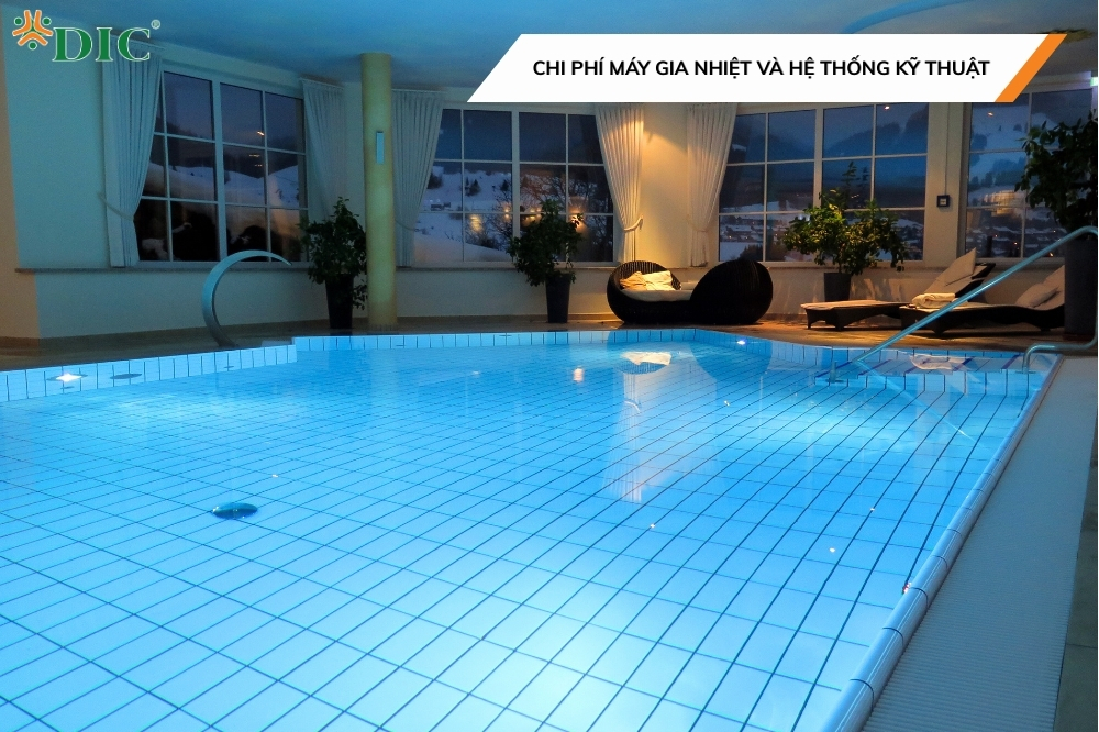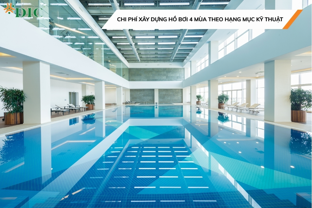 • Loại hình hồ bơi (trong nhà/ngoài trời): Bể bơi trong nhà phát sinh thêm chi phí kết cấu bao che, hệ thống thông gió, và cách nhiệt.