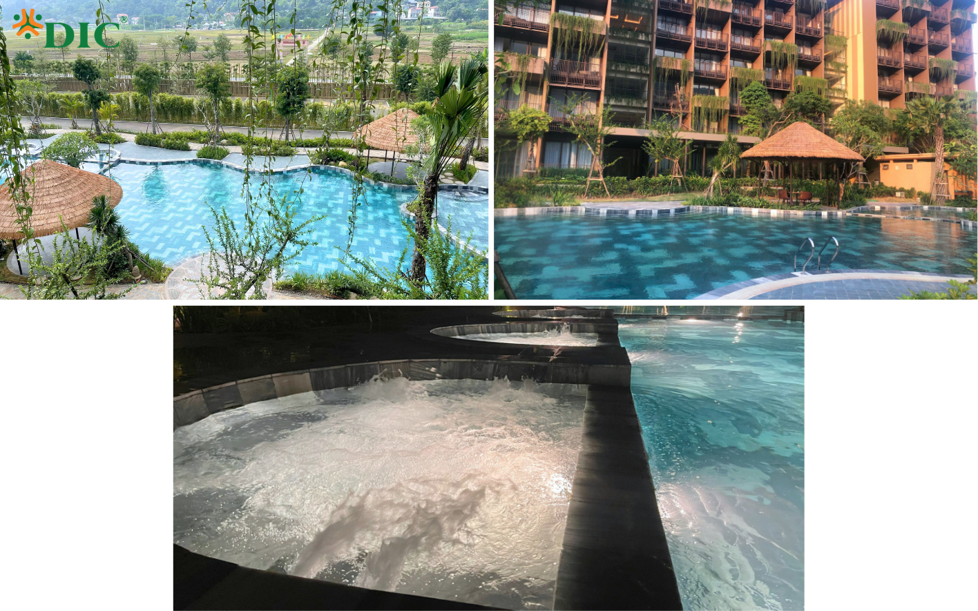 Tại Apec Mandala Kim Bôi (Hòa Bình), DICTECH triển khai 1 bể khoáng nóng ngoài trời trung tâm và 43 bể khoáng nóng tại các villa, tạo điểm nhấn wellness khác biệt cho khu nghỉ dưỡng. Hệ thống góp phần nâng trải nghiệm thư giãn – trị liệu, kéo dài thời gian lưu trú, tăng công suất phòng và doanh thu dịch vụ, qua đó củng cố hình ảnh cao cấp của resort.