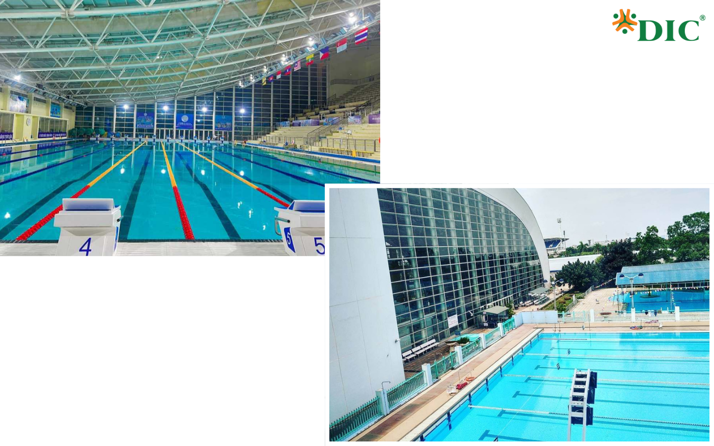 DICTECH trực tiếp cải tạo và nâng cấp tổ hợp bể bơi, bể nhảy cầu tại Cung Thể thao Dưới nước – Mỹ Đình. Hạng mục gồm bể trong nhà và bể ngoài trời, quy mô chuẩn thi đấu: 50×25 m, sâu 2,5–3 m, 10 làn bơi. Đơn vị lắp đặt thêm hệ bơm nhiệt để cấp nước nóng ổn định cho bể bơi thi đấu. Công trình hoàn thiện phục vụ SEA Games 31 và nhu cầu tập luyện lâu dài.