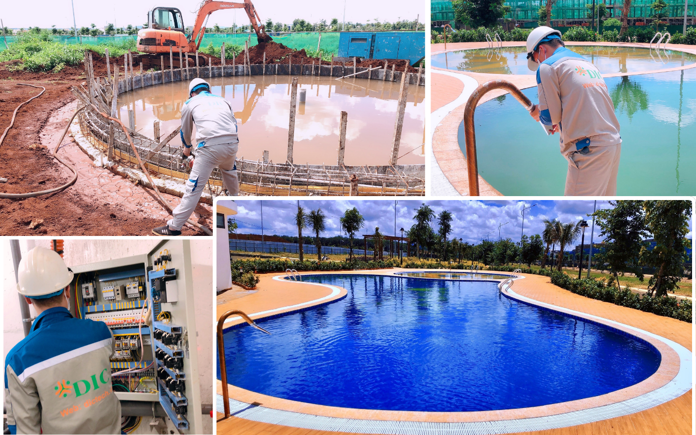 Sau khi hoàn thành hồ sơ thiết kế và các hạng mục thi công bể bơi, chúng tôi sẽ tiến hành thi công. Lộ trình xây bể bơi của DICTECH được thực hiện theo các bước chuẩn mực, có sự giám sát chặt chẽ của đội ngũ kỹ sư, đảm bảo tiến độ và chất lượng từng hạng mục.